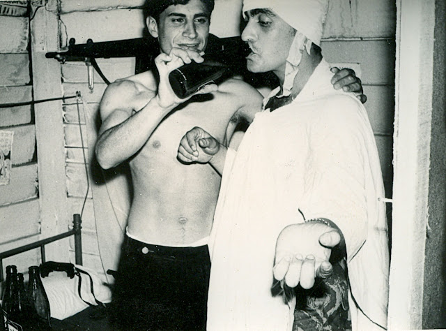 Tendo por camarim o meu recanto no Aquartelamento do Lucusse e provavelmente receoso de agarrar a meia-cuca para não estragar “o verniz das unhas”, aqui vemos Eu a dar-lhe de beber, para que ganhe coragem no momento da entrada em mais um show erótico.